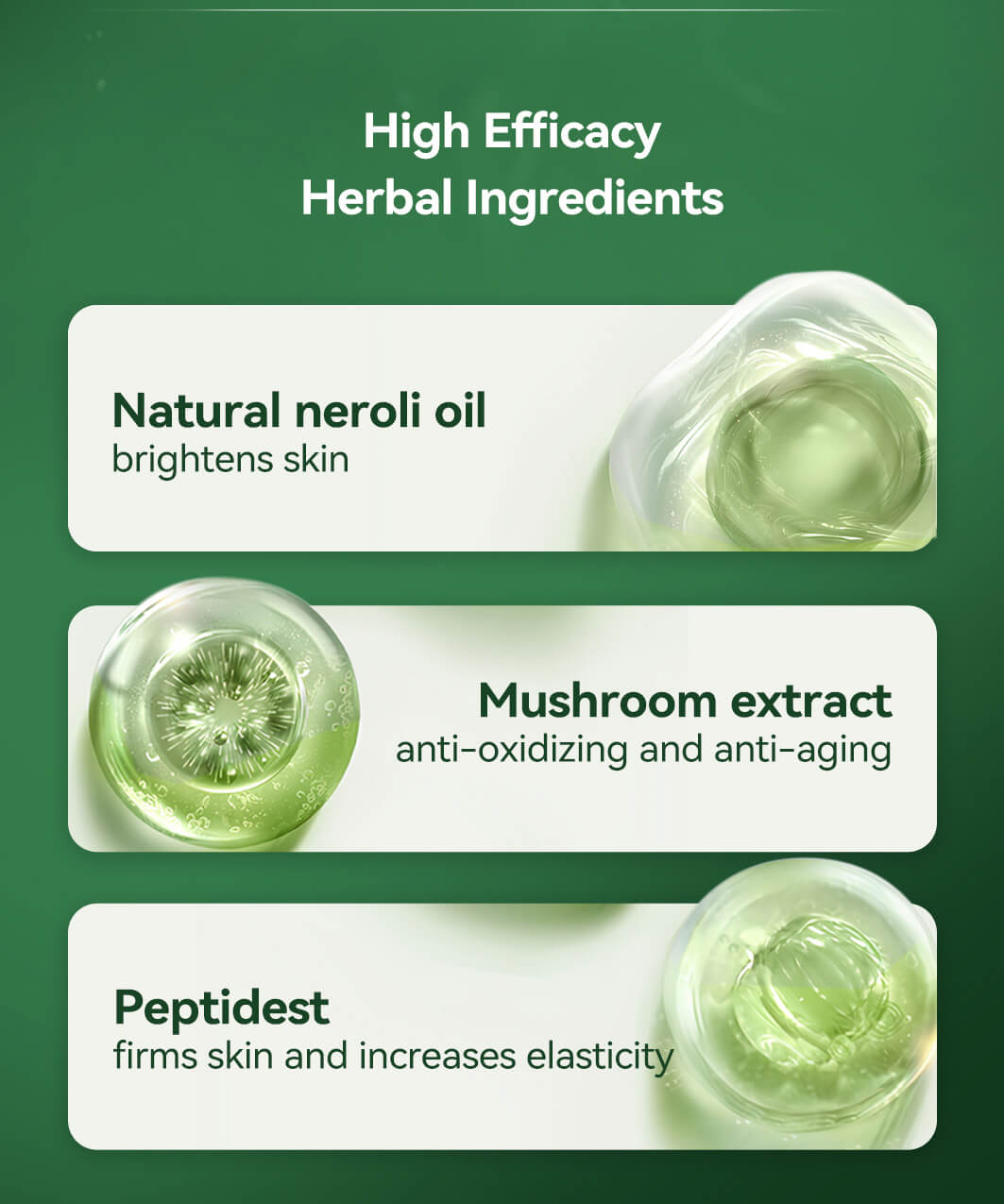 Formulated with birch extract to brighten skin, mushroom extract for anti-oxidation and anti-aging, and peptides to firm and increase elasticity.